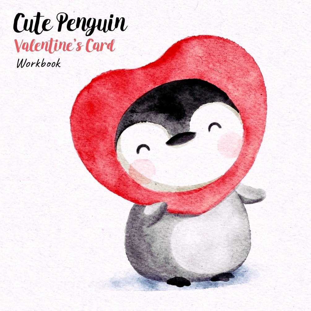 Cute Watercolor Penguin. Valentine’s Card Workbook