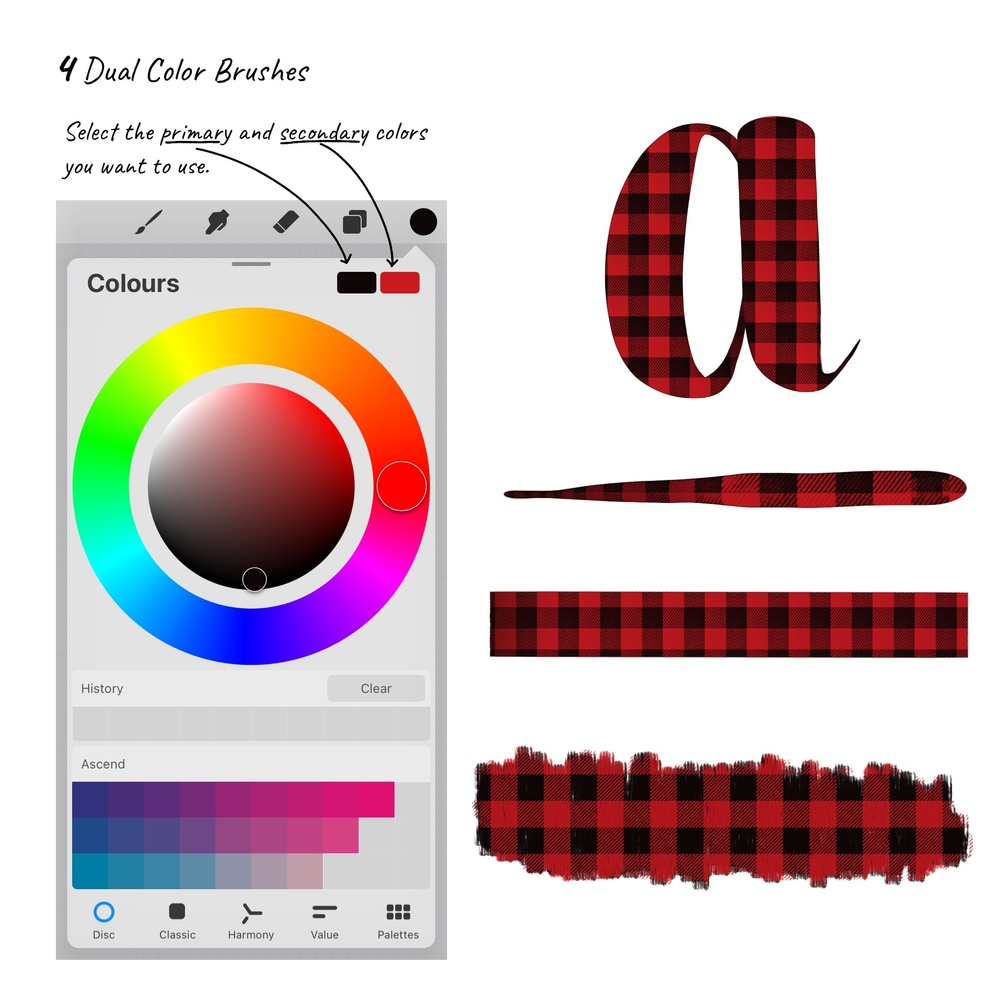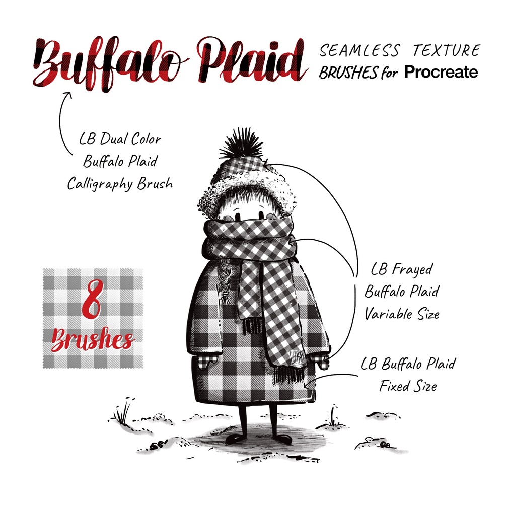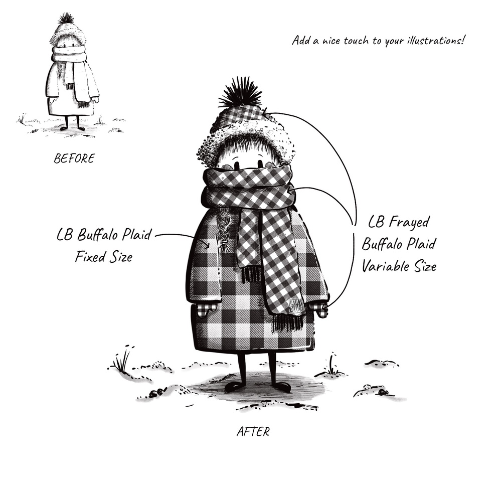 • 3 Calligraphy Buffalo Plaid Seamless Texture Brushes (1 Monochrome & 2 Dual Color)