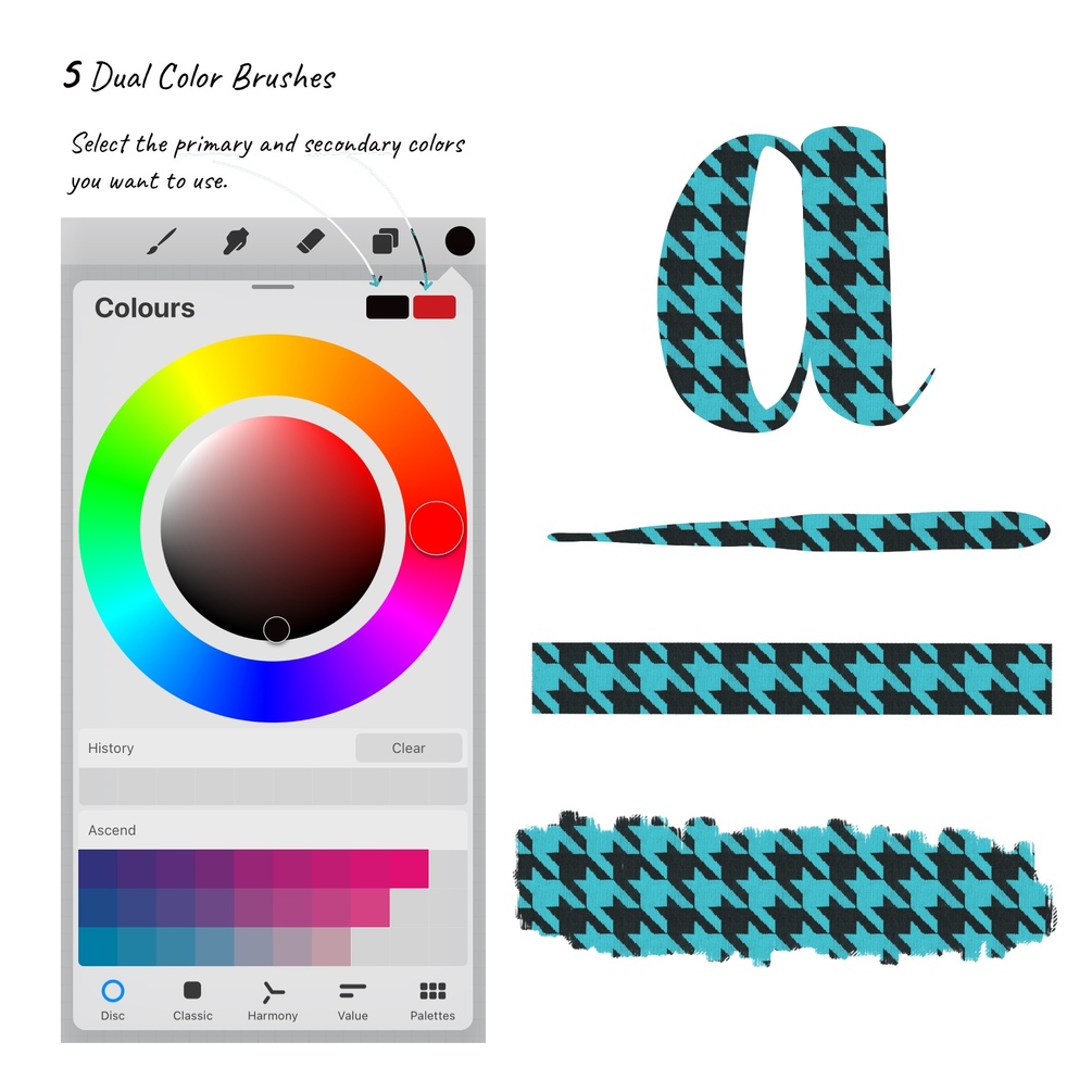• 5 Calligraphy Houndstooth Seamless Texture Brushes (2 Monochrome & 3 Dual Color)